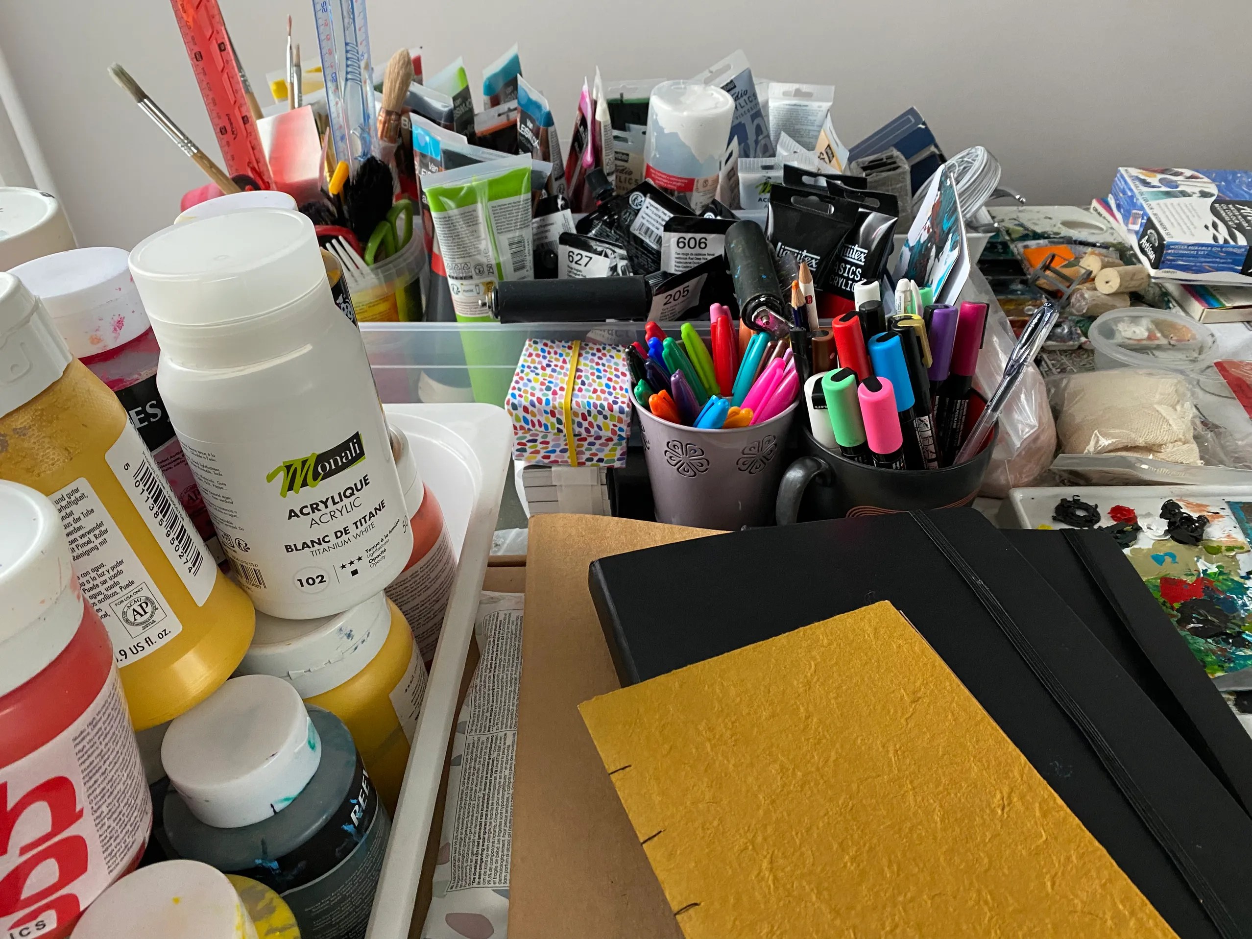 Mes ateliers d’expression créative utilisent le dessin, la peinture, le collage, l’écriture, la terre, la photo… pour explorer et exprimer les émotions, pour soulager les stress, pour se découvrir, … pour se faire du bien.
